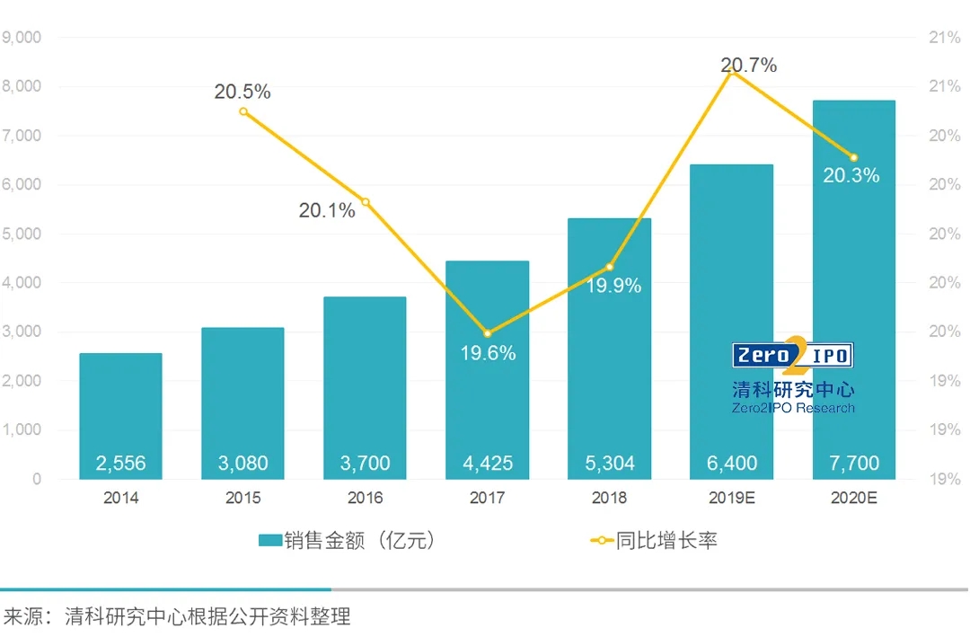圖表 2 2014-2020E中國醫(yī)療器械市場規(guī)模情況(億元)