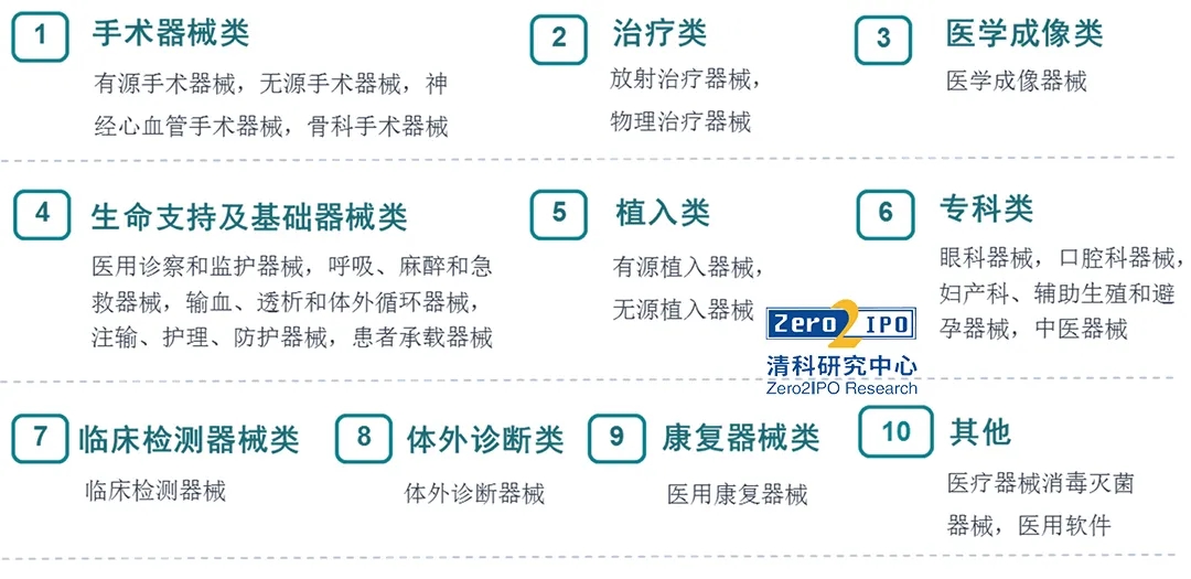 醫(yī)療器械,是指直接或者間接用于人體的儀器、設(shè)備、器具、體外診斷試劑及校準(zhǔn)物、材料以及其他類似或者相關(guān)的物品,包括所需要的計(jì)算機(jī)軟件。結(jié)合原國家食藥監(jiān)總局《醫(yī)療器械分類目錄》和醫(yī)療器械市場投融資特點(diǎn),本研究將醫(yī)療器械產(chǎn)品分為10個(gè)大類,包括:手術(shù)器械類、治療類、醫(yī)學(xué)成像類、生命支持及基礎(chǔ)器械類、植入類、專科類、體外診斷類、臨床檢測器械類、康復(fù)器械類等。