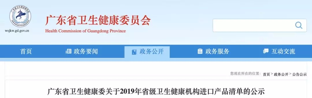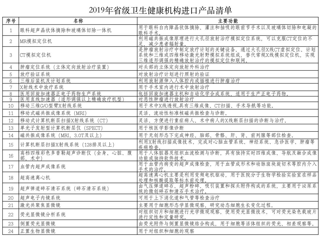 廣東省衛健委曾發布《關于 2019 年省級衛生健康機構進口產品清單的公示》,納入2019年廣東省省級衛生健康機構進口產品目錄清單的醫療設備,共計132種,試劑73種。