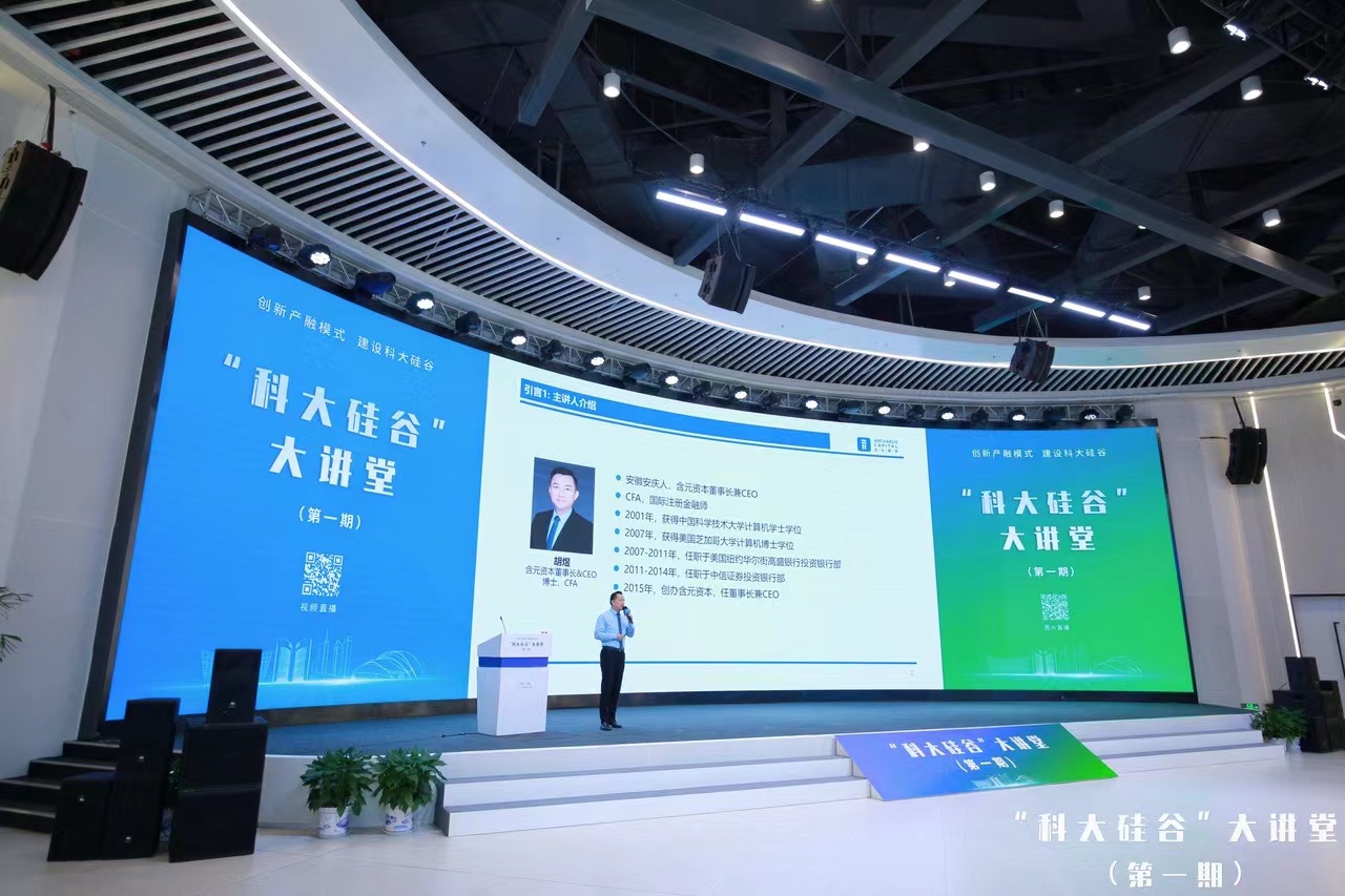 8月19日,“科大硅谷”大講堂(第一期)在中安創谷全球路演大廳舉行。該活動以“創新產融模式 建設科大硅谷”為主題,邀請相關專家做《基于MMMG(科技、產業、資本、政府)模型的高質量發展思考和實踐》主題分享。